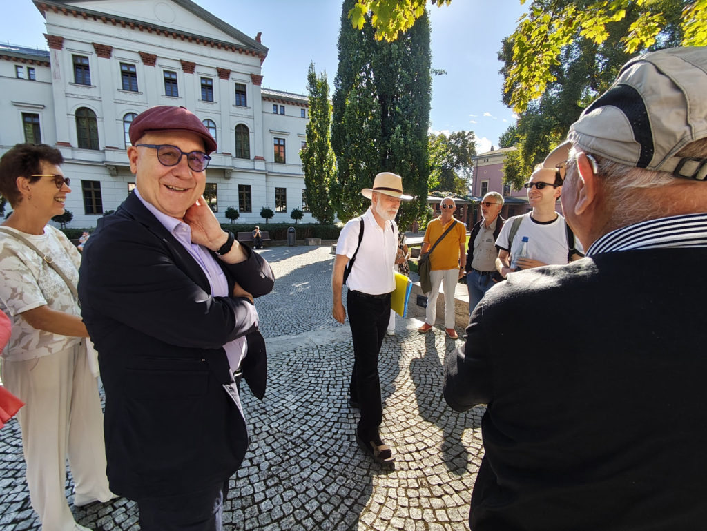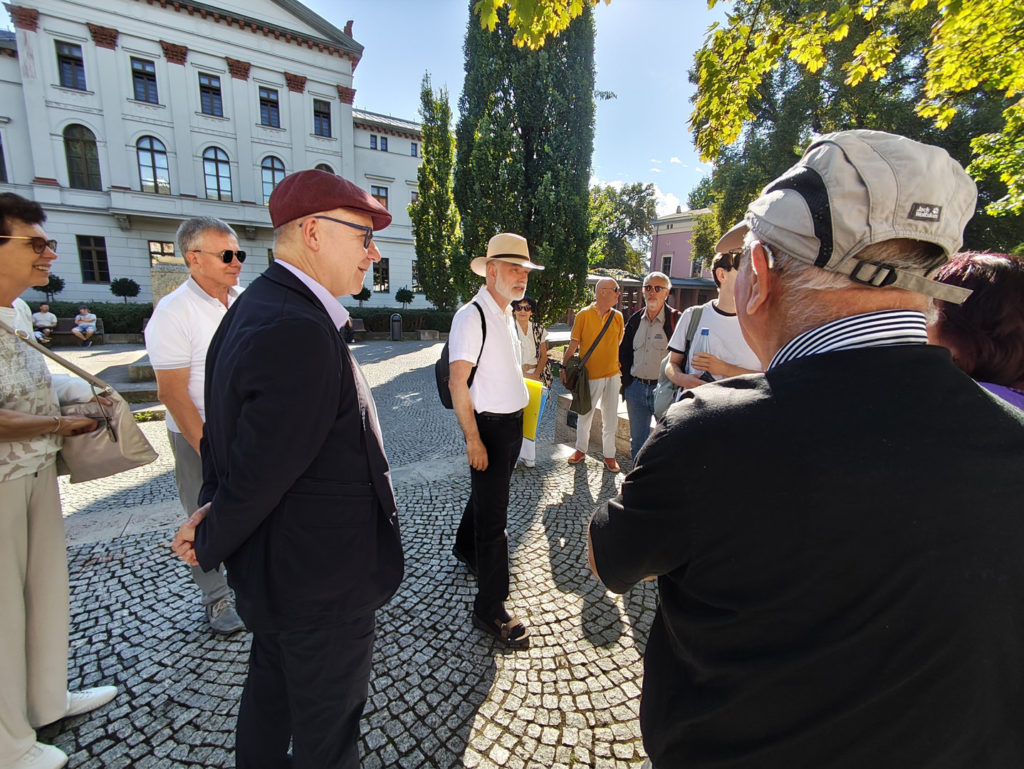 Unsere diesjährige Exkursion führte uns mit 48 Mitgliedern am 20. September nach Weimar. Die Freunde und Förderer des Stadtmuseums Weimar e. V. erwiesen sich als äußerst rührige Gastgeber. Nach der Präsentation des Films „Weimar - Mythos und Wahrheit“ im Bertuchhaus begaben sich die Mitreisenden auf eine Stadtführung zu „Denkmälern in Weimar“ (Dr. Alf Rößner) bzw. über „Weimars weltberühmte Besucher im späten 19. und frühen 20. Jahrhundert“ (Axel Stefek). Nach der Besichtigung des Cranach-Altars in der Stadtkirche St. Peter und Paul rundete der Besuch des Herder-Gartens einen wunderschönen Tag ab.